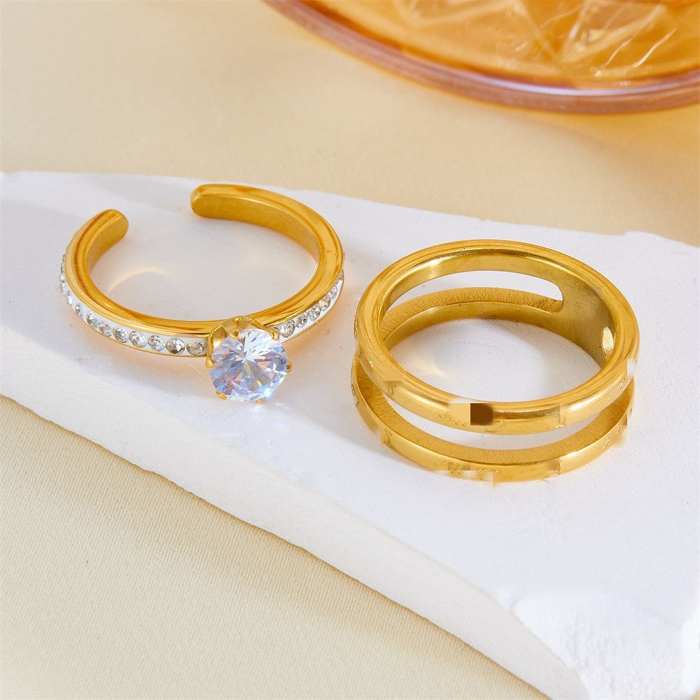 All-matching Graceful Double-layer Assembly Diamond-studded Ring Women