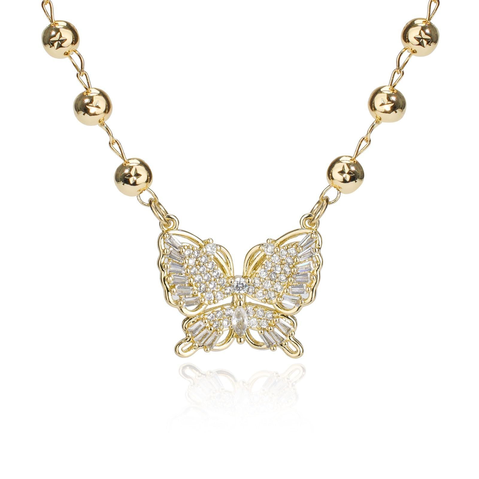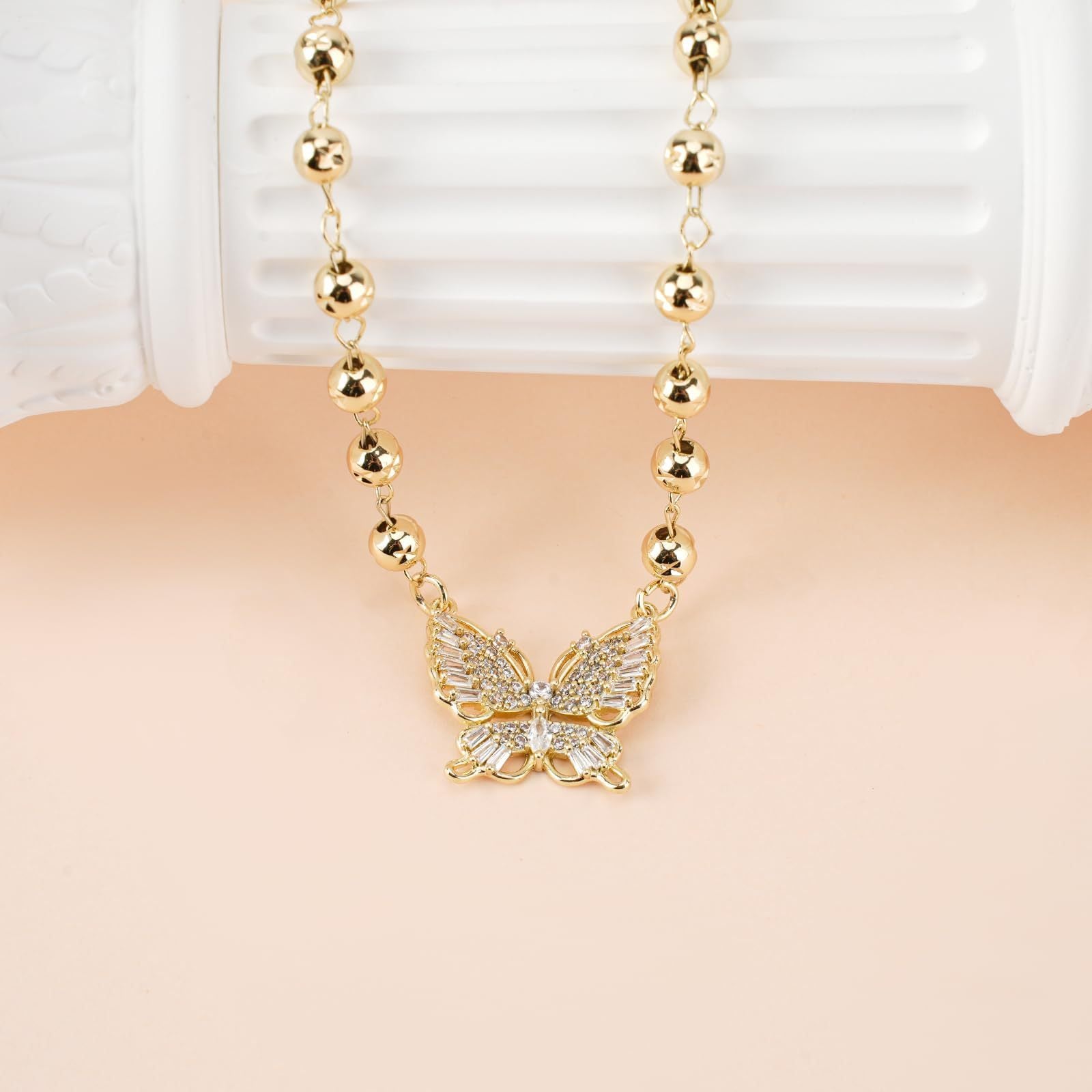 Gold Butterfly Necklace Thanksgiving Gift Zircon Inlaid Adjustable