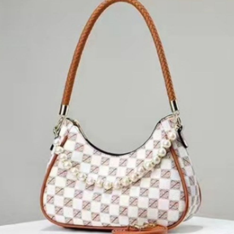 Versatile Lattice Pearl Women's Shoulder Bag