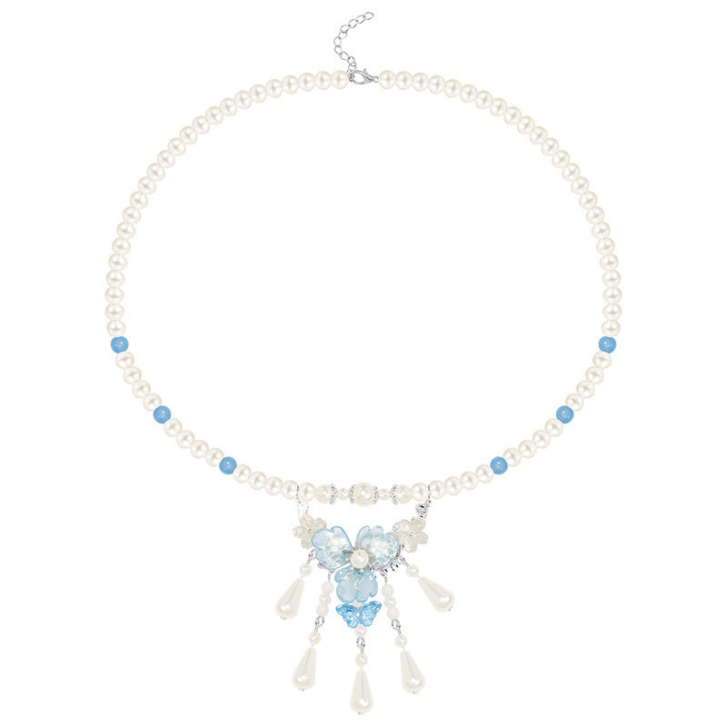 This handmade blue peony petal necklace features imitation pearls shaped like flowers and leaves. Designed for women, it complements traditional... Read more