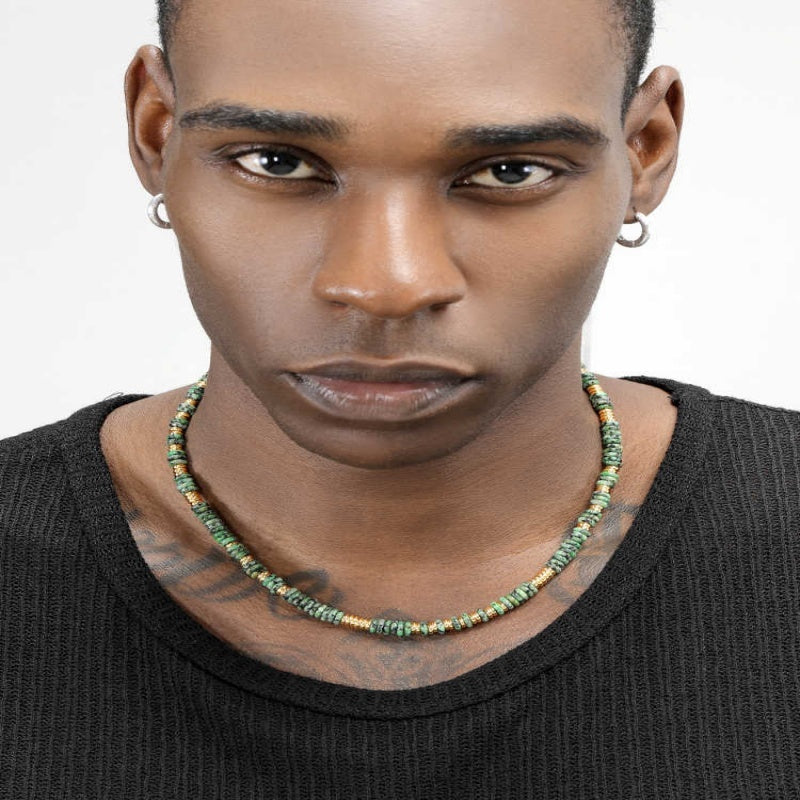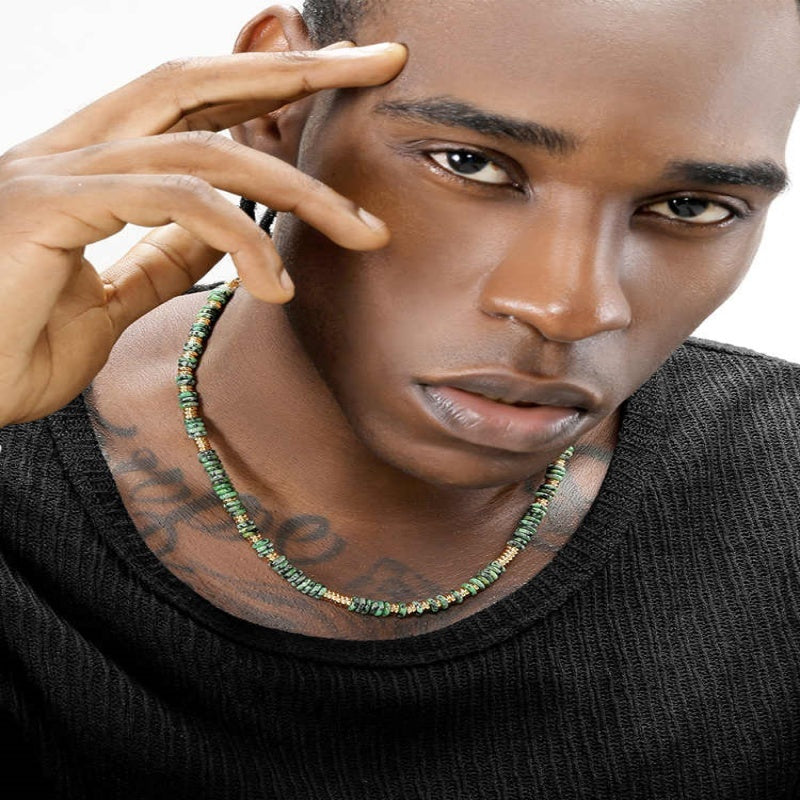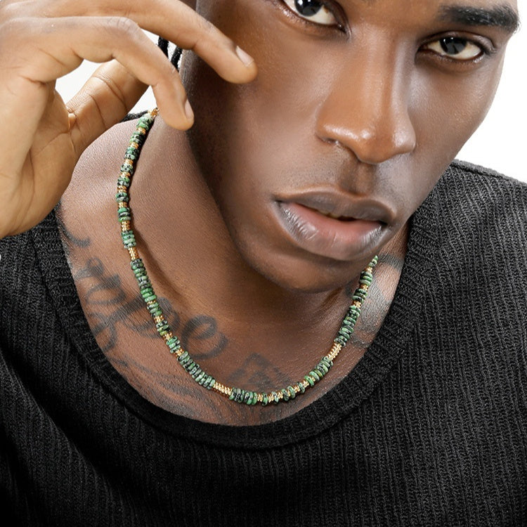 Women's Vintage Speckled Green Stone Beaded Necklace